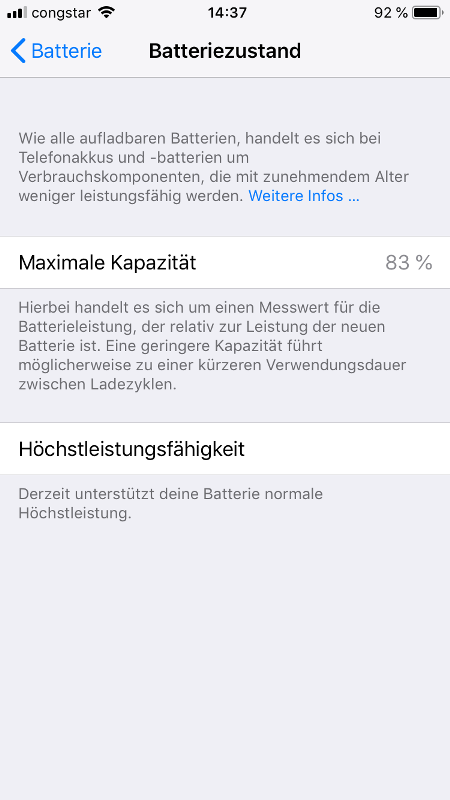 Weil ich gerade erst den Akku meines alten, aber noch ziemlich schönen iPhone 6s habe tauschen lassen, interessiert mich folgende Meldung doch sehr. Es geht darum, dass Apple in seinen neuen Geräten eine Art Sperre einbaut, die dafür Sorge trägt, dass man die Akku-Gesundheit in der Systemeinstellung nicht mehr abrufen kann, wenn der Akku durch einen Drittanbieter getauscht worden ist. Mittlerweile bieten viele Dienstleister so einen Service an, beispielsweise auch eine große Elektronikkette. Für 49 Euro kann man hier seinen Akku tauschen lassen.