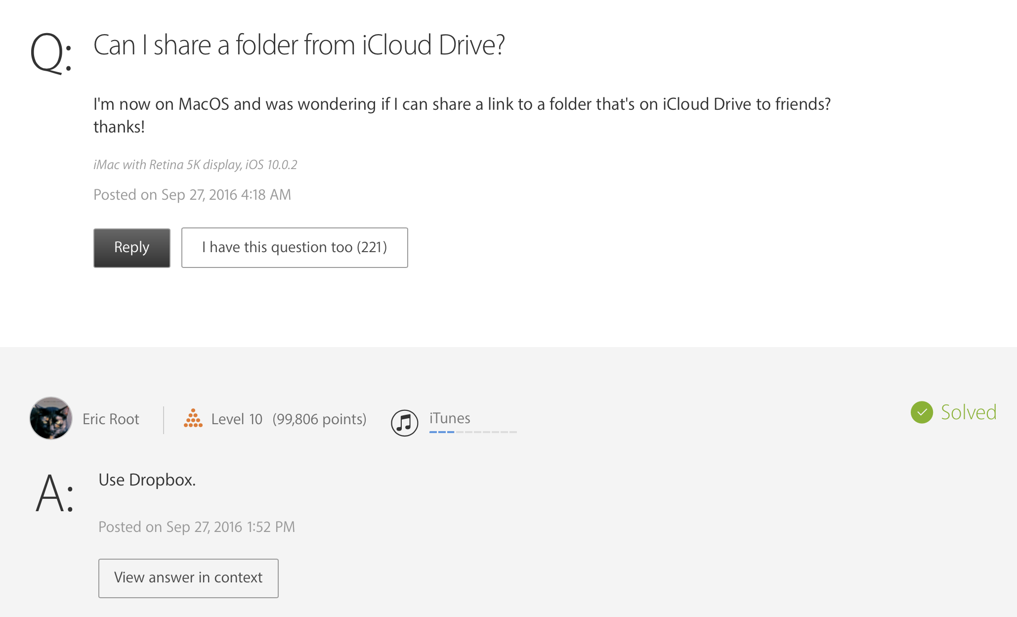 Es ist schade, denn dadurch macht iCloud-Drive, vor allem mit vergrößertem und bezahlten Online-Speicher, viel weniger Sinn. Schade, Apple. Und unverständlich.