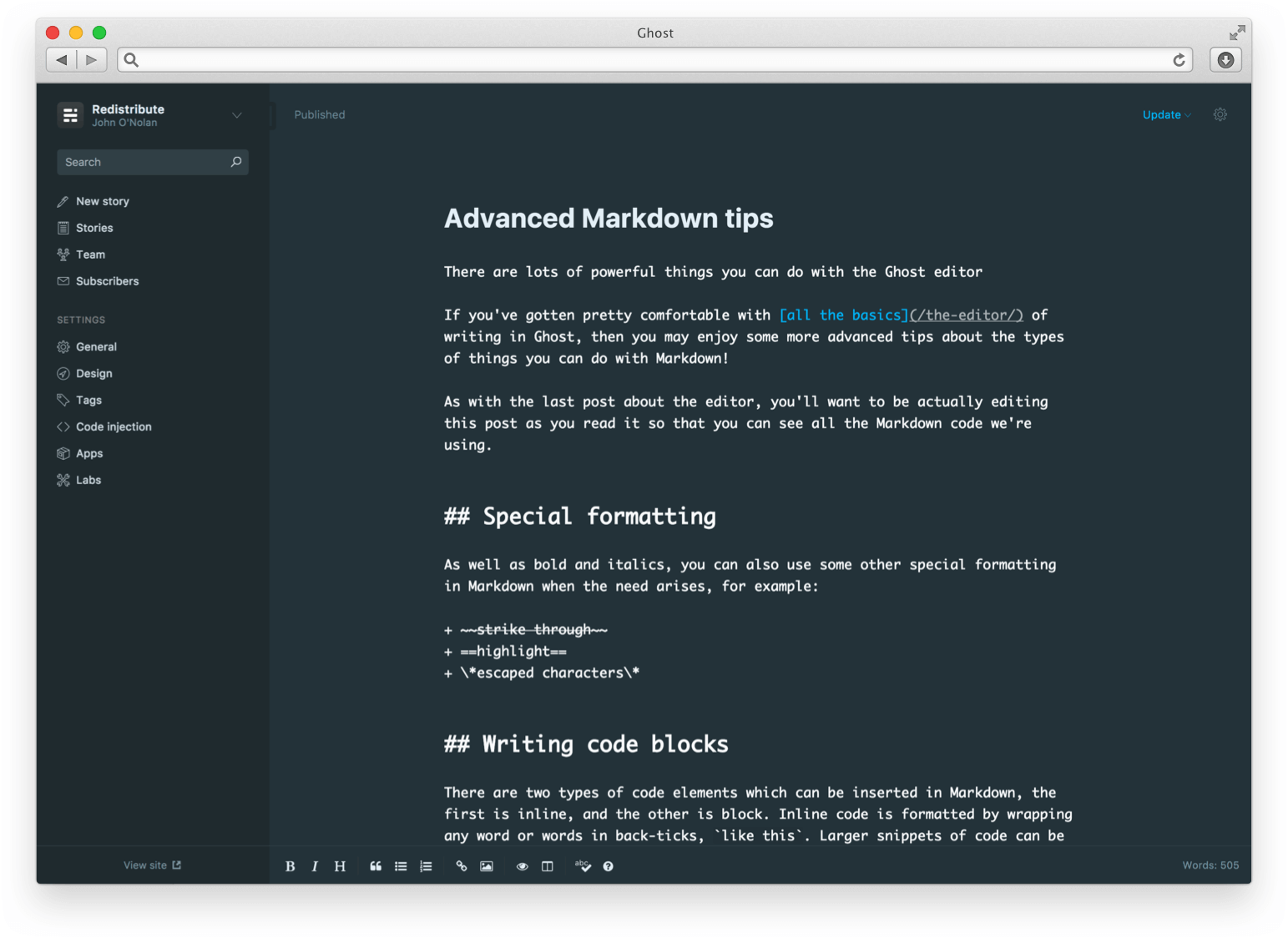 Über der Haube kommt Ghost 1.0 mit einem neuen Editor, in den sehr viel Arbeit geflossen ist.