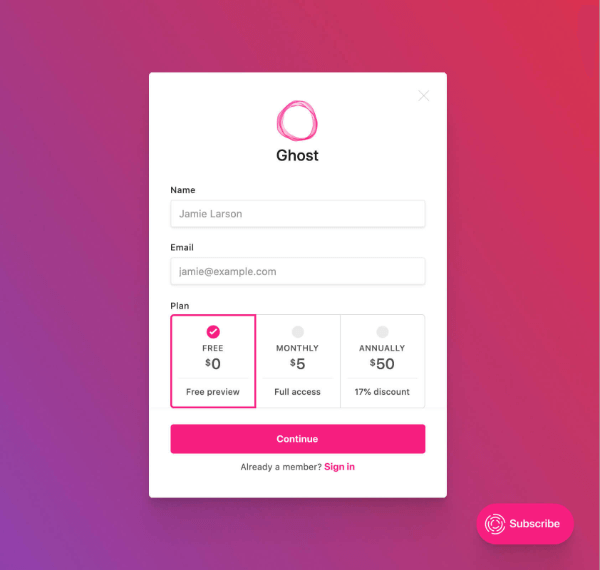 Connect your Stripe account and offer premium content to your audience. Our creators are already making over $2 million per year, while Ghost takes 0% payment fees.