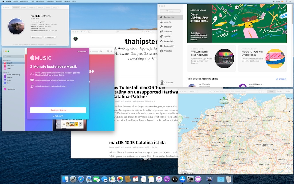 Die Hardware muss allerdings prinzipiell Catalina unterstützen, das heißt, man benötigt auf jeden Fall eine Metal-Kompatible-Grafikkarte in seinem MacPro. Wenn man auf seinem MacPro5,1 aber schon Mojave laufen lassen konnte, stehen die Chancen gut dass es auch mit Catalina klappt. Ich habe noch eine 512GB große SSD in meinem MacPro unbenutzt, diese werde ich später nutzen und einen Clean Install von Catalina durchführen. Ihr dürft gespannt bleiben. Bis es soweit ist und ich von meinen Erfahrungen berichte, könnt ihr euch folgendes How-To-Video anschauen, welches beschreibt wie man mit dem Catalina-Patcher 10.15 auf einem nicht unterstützten Mac installiert.