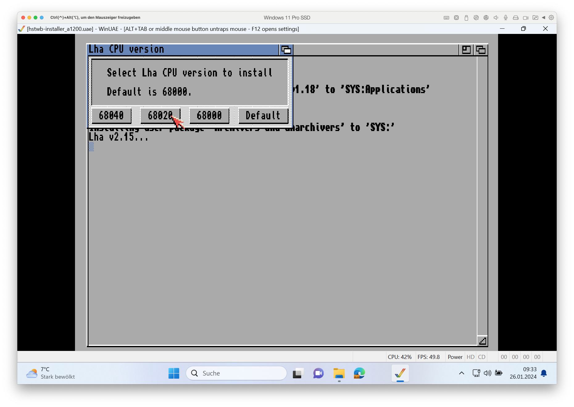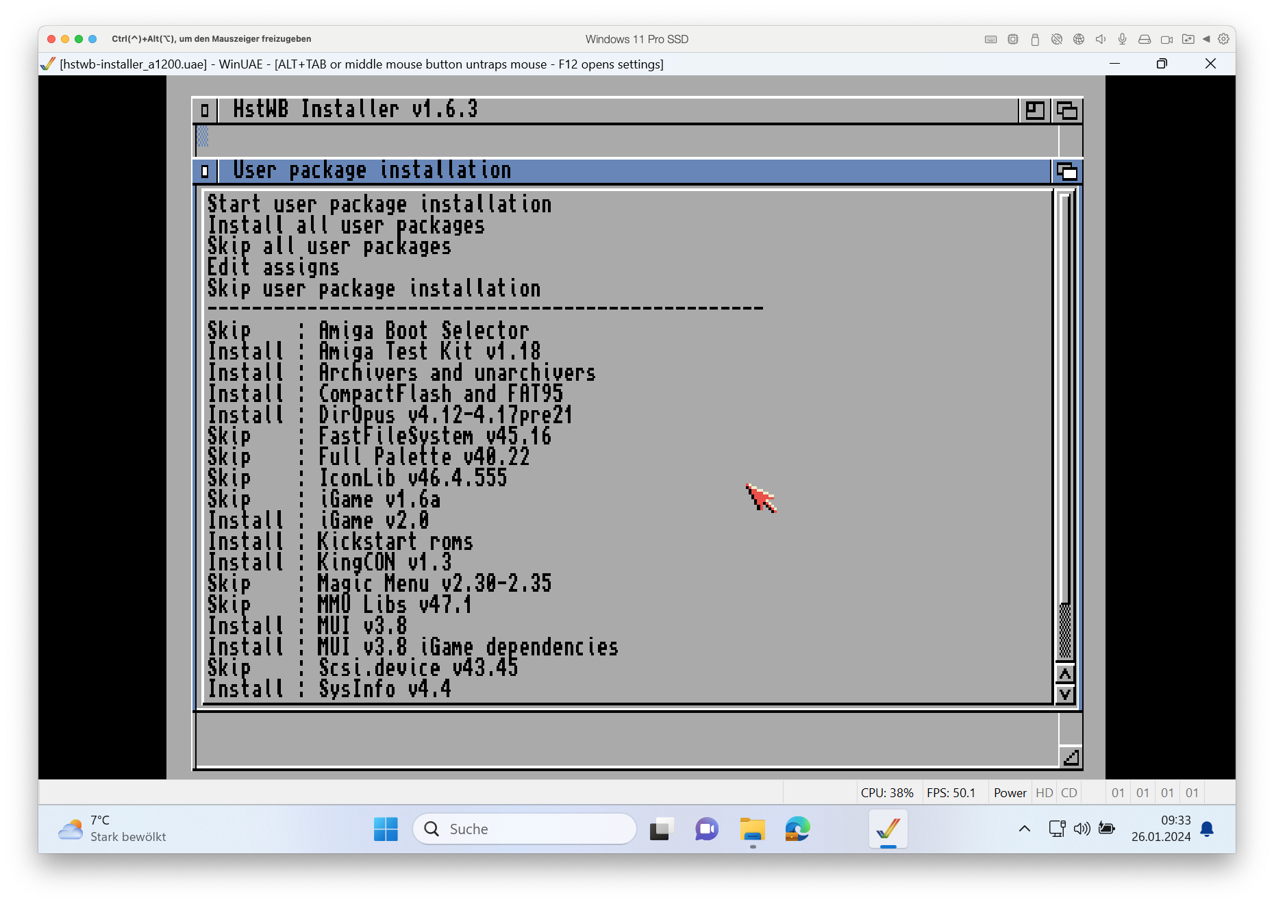 Er wird während der Installation immer mal wieder nach einer Prozessoroptimierung fragen, denn er kann verschiedene Software abgestimmt für die CPUs installieren. Mein Amiga hat einen 68020 Prozessor, den ich dann auswähle. Nutzt ihr einen Amiga 500, ist es der 68000. ZIP und Packer laufen damit (wohl optimierter und) schneller.