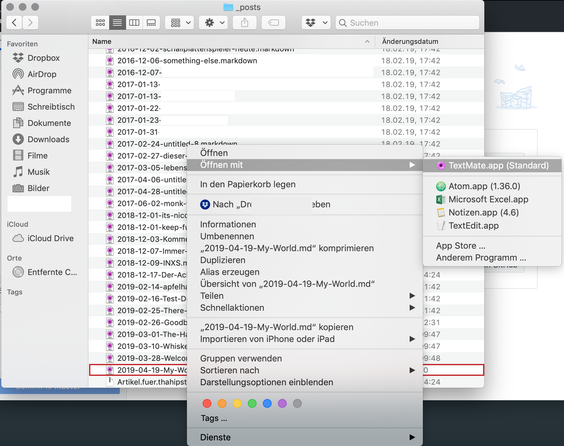 Kennt ihr das Problem? Ihr nutzt immer ein spezielles Programm für einen speziellen Dateityp, zum Beispiel nutze ich das legendäre TextMate für *.Markdown-Dateien. Well… meistens enden diese Dateien auf .markdown. Nun ist es aber auch so, dass mein Weblog auf Jekyll drüben bei apfelhammer.de, welches ich via Github-Pages veröffentliche, dass diese Markdown-Dateien dort auf *.md enden. Und mein Mac öffnet diese Dateien stur mit Xcode. Ihr könnt euch ja vorstellen dass es schon eine andere Hausnummer ist, wenn nur ein Texteditor geöffnet wird oder gleich eine ganze IDE an den Start geht, nur um eine Markdown-Textdatei zu bearbeiten. Grund genug also, das abzuschalten.