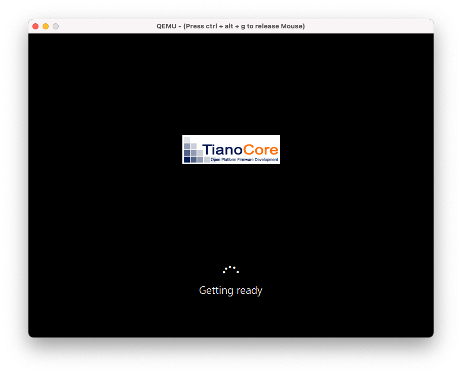 -bios QEMU_EFI.fd- Achtung: Es kann unter Umständen folgende Meldung erscheinen: