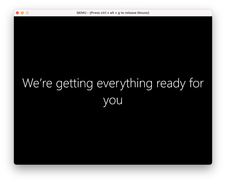 cd ~/Downloads/qemu-m1- Startet QEMU und die virtuelle Maschine. Kopiert den unten stehenden Code ins Terminal Fenster. (kopiert den gesamten Block auf einmal),und drückt Enter: