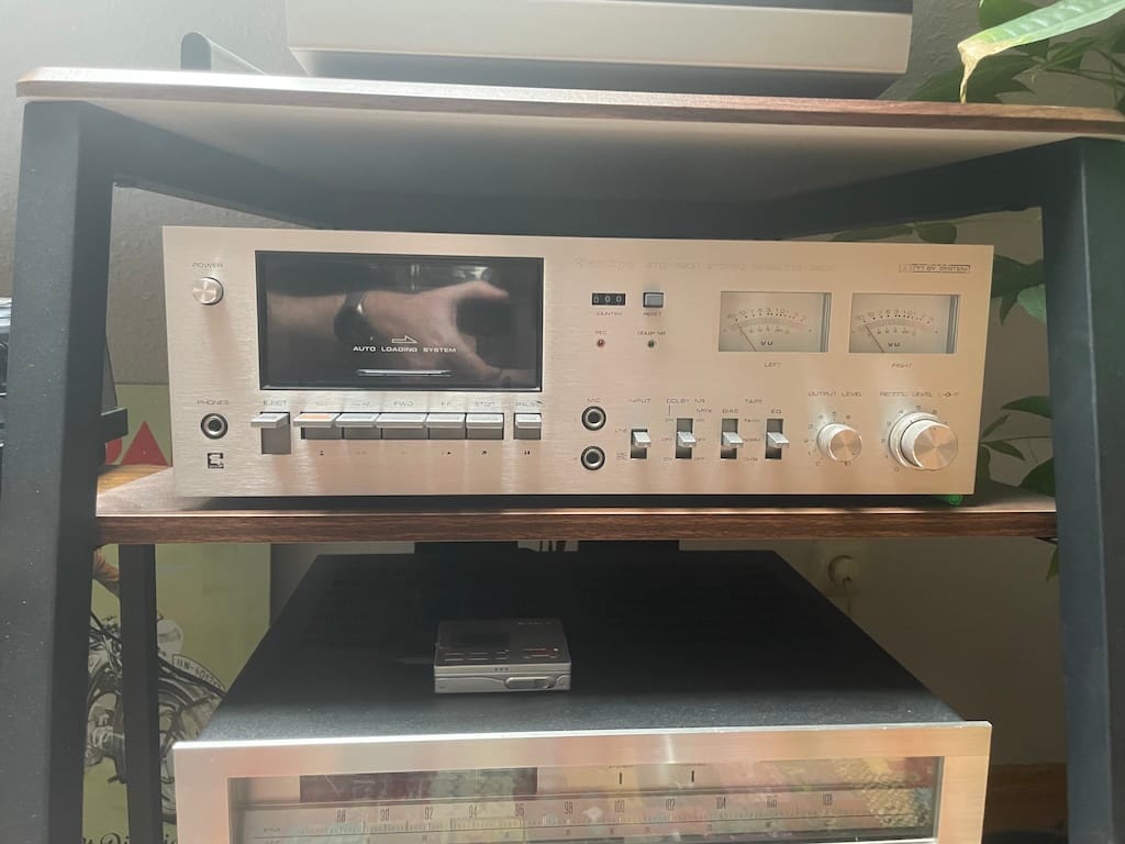 Das Sankyo STD-1800 ist ein Stereo-Kassettendeck aus den späten 1970er Jahren, das für seine zuverlässige Mechanik und klare Klangwiedergabe geschätzt wird. Als 2-Kopf-Deck mit Dolby B Rauschunterdrückung bietet es eine ausgewogene Performance für Liebhaber analoger Tonträger, allerdings steht es qualitativ nicht in einer Reihe mit dem SA 8500 oder dem Technics SL 10. Aber es rundet mein Set ganz gut ab.